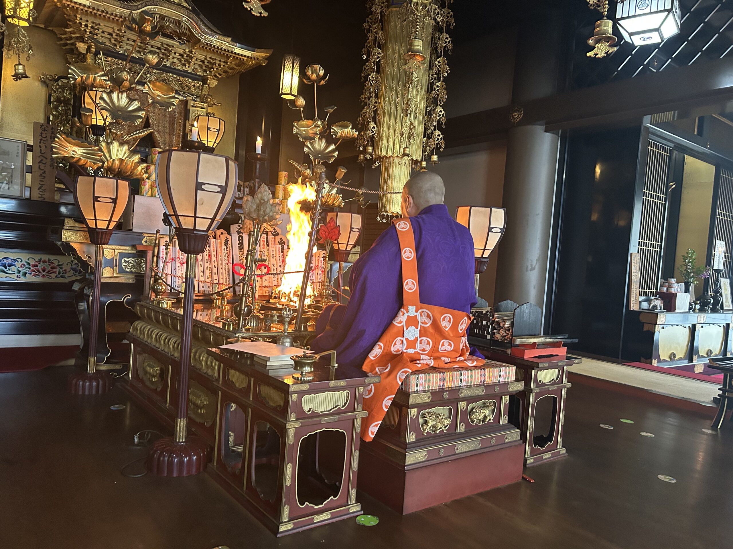 ご宝前において護摩法要を行い、健康祈願、学業成就、災厄消除を祈願いたします。