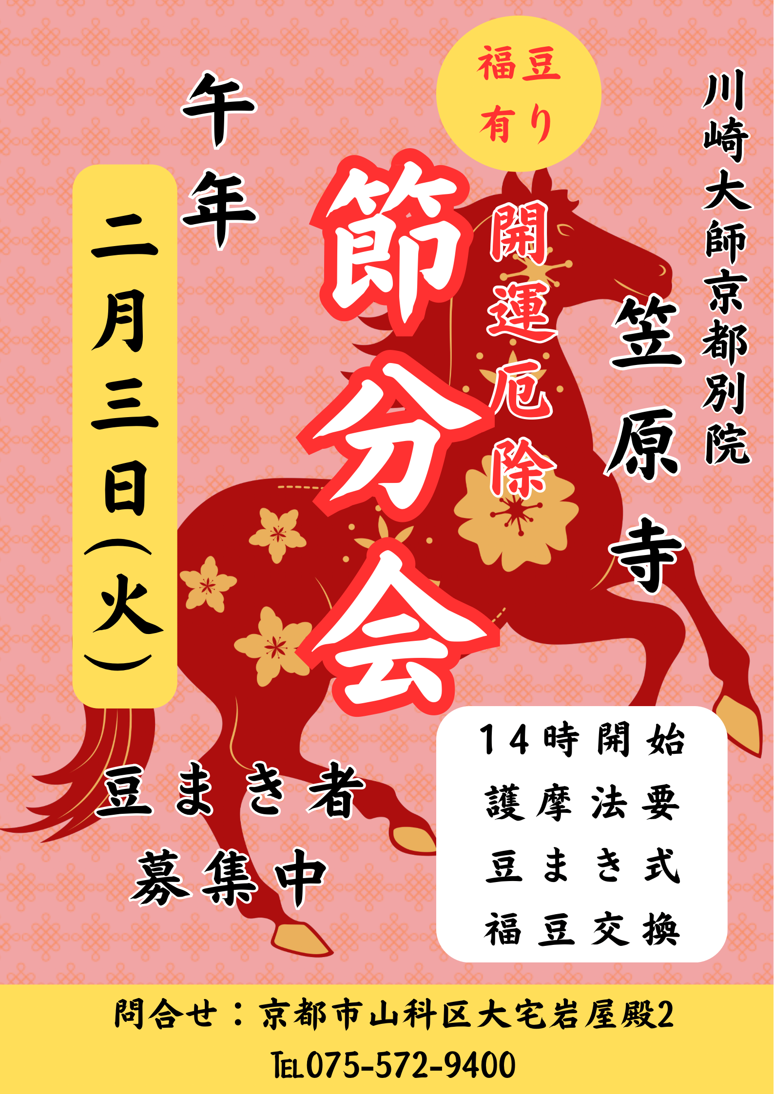 備 考:雨天決行(雨天時は本堂内にて豆まき式を行います)